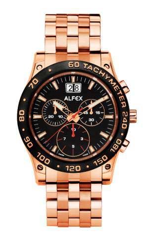 Designed by Marcus Eilinger/Quartz Movement/Stainless Steel Case, rose gold plated, tachymeter bezel (42mm)/Black Dial/Stainless Steel Bracelet, rose gold plated/Sapphire Crystal/Water resistant to 10 ATM